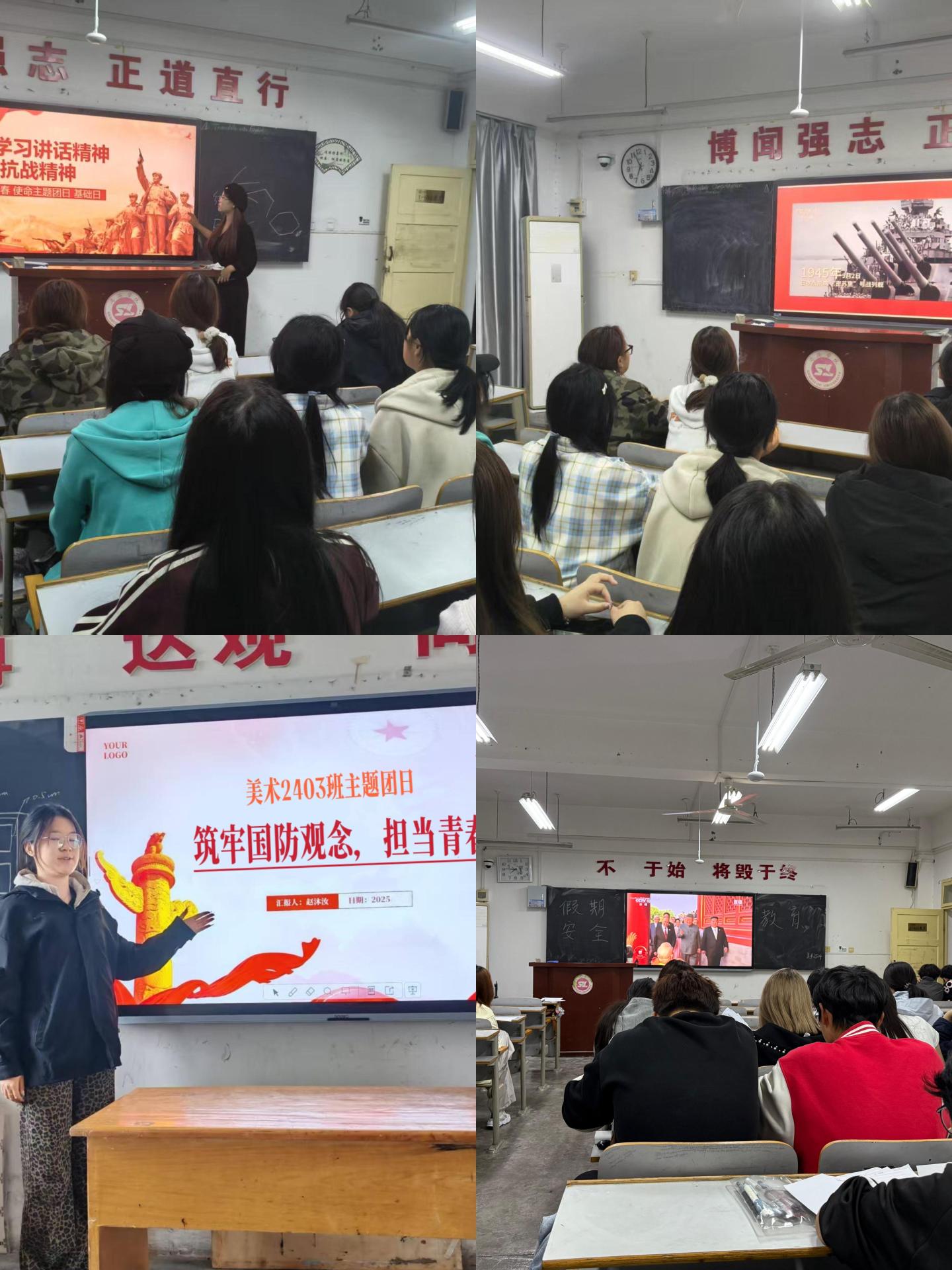 为深入学习贯彻习近平新时代中国特色社会主义思想,引导广大团员青年增强国家安全意识、弘扬伟大抗战精神、坚定理想信念,2025年9月,共青团商洛学院委员会组织全校各二级学院团总支围绕“学习习近平总书记在纪念中国人民抗日战争暨世界反法西斯战争胜利80周年大会上的重要讲话精神”“筑牢国防观念,担当青春使命”“喜迎国庆 青春献礼”三大主题,开展了形式多样、内容丰富的主题团日活动,覆盖全校各级团组织,取得了显著成效。