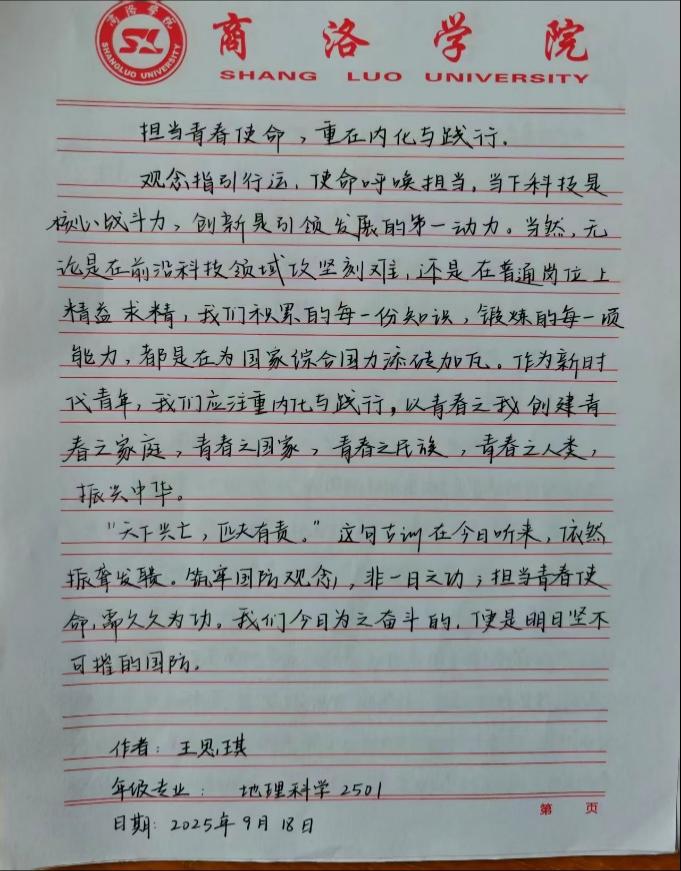 本次9月主题团日活动全校联动、组织有序、特色鲜明,既有理论学习的深度,又有实践体验的广度,充分展现了商洛学院团员青年昂扬向上的精神风貌与时代担当。校团委将继续深化思想政治引领,创新活动形式,引导广大青年在实现中华民族伟大复兴的征程中书写别样精彩的青春篇章。